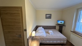 Każdy z naszych pokoi został zaprojektowany w taki sposób, aby łączyć funkcjonalność z przyjemną, estetyczną przestrzenią wypoczynku. Wnętrza są jasne, przestronne i urządzone w spokojnym, nadmorskim stylu, który subtelnie nawiązuje do otaczającego krajobrazu. Naturalne materiały, marynistyczne akcenty oraz przemyślany układ wyposażenia sprawiają, że pobyt staje się komfortowy zarówno podczas krótkich weekendowych wypadów, jak i dłuższych urlopów.